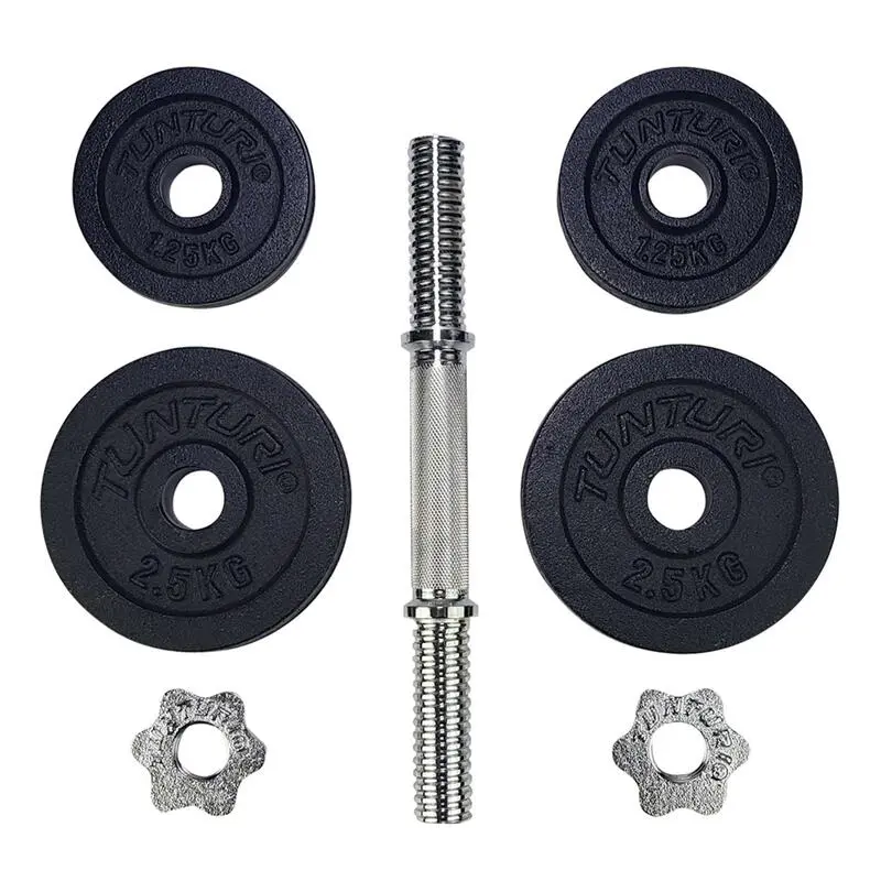 Compra en Decathlon Juego de mancuernas 10 kg Este juego de mancuernas Tunturi es imprescindible si quieres entrenar todo tu cuerpo de forma sencilla.