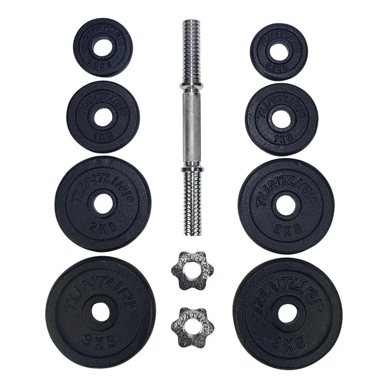 Compra en Decathlon Juego de mancuernas 15 kg Este juego de mancuernas Tunturi es imprescindible si quieres entrenar todo tu cuerpo de forma sencilla.